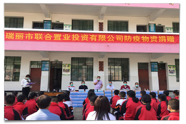 能投聯(lián)合外經(jīng)瑞麗市聯(lián)合置業(yè)投資有限公司在瑞麗市防疫消毒物資緊缺和學(xué)生開學(xué)在即的情況下,得知瑞麗市姐勒中心小學(xué)防疫物資出現(xiàn)嚴(yán)重短缺,已對(duì)學(xué)校正常開學(xué)工作造成影響。聯(lián)合置業(yè)公司主動(dòng)履行企業(yè)政治、經(jīng)濟(jì)、社會(huì)責(zé)任,積極踐行集團(tuán)核心價(jià)值觀,通過多方籌措,采購了一批醫(yī)療防疫物資,包括溫度計(jì)400支、洗衣皂2000塊、洗手液500瓶、84消毒液60公斤,有效緩解了姐勒中心小學(xué)防疫物資短缺的問題,保障了學(xué)校師生的健康。