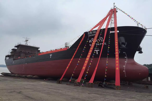 2015年6月15日我公司為泰國知名船東NATHALIN GROUP建造的一艘3000T成品油船順利下水。 該船總長77米,型寬15米,型深7米,總噸位2409噸,主要用于沿海地區(qū)運輸閃點在60℃以下的貨物。貨油泵及軸帶發(fā)電機是由主機前端單輸入多輸出齒輪箱驅(qū)動。