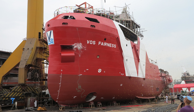 近日,南京東嘉船舶舉行了兩艘50米應(yīng)急搜救船的命名儀式,這也是在北海油田的應(yīng)急搜救船首次采用亞洲設(shè)計(jì)公司設(shè)計(jì),并由中國船廠制造。以往此類船型一般是采用歐洲設(shè)計(jì),歐洲制造,這標(biāo)志著國內(nèi)船廠已經(jīng)有能力承建海工高標(biāo)準(zhǔn)的特種船型。 船東方Vroon公司的總經(jīng)理,商務(wù)總監(jiān)及前董事長出席,ABS也派代表參加了儀式。