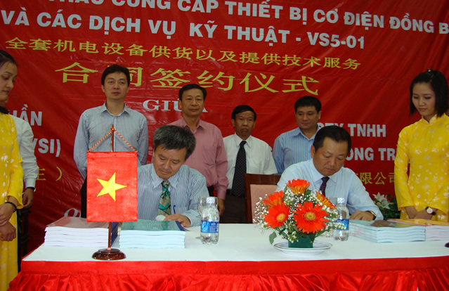馮總代表UREC與和業(yè)主方代表簽署項目合同馮總向越南永山投資股份公司董事長DoPhongThu贈送禮品越南永山5號水電站工程承包合同的簽約儀式于2010年3月2...