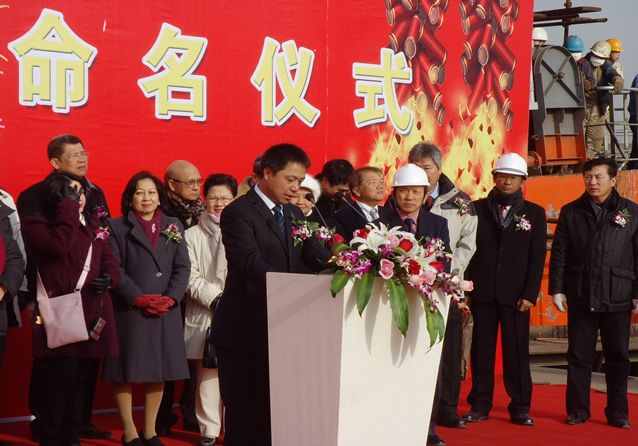 After delivery of the No.1 chemical tanker, the No.2 chemical tanker was handed over to the Thai ship-owner at the end of November, 2009. The representatives of the ship owner, the ship supervisor, the ship manufacturer and UREC attended the ceremony and the chemical tanker was named as “Bhureemas” which means golden land.